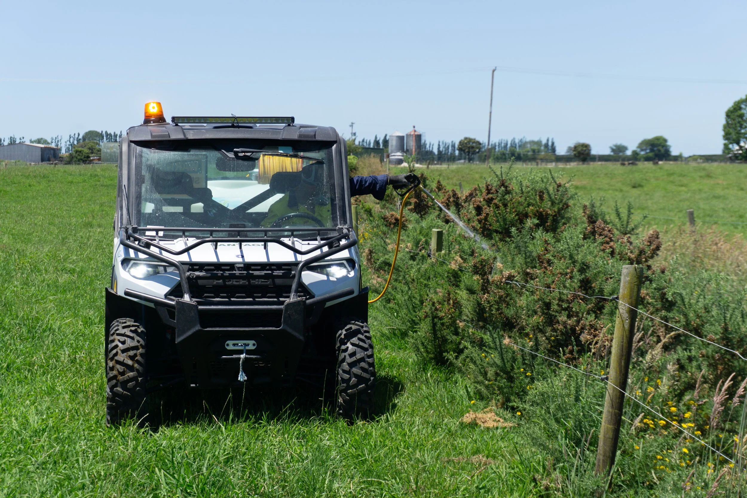 Our ground spraying option uses a Polaris with hose and reel and is ideal when drone spraying isn’t required, or where ground access is the most practical solution. It’s well suited for accessible areas, fence lines, drains, and working close to waterways. This method allows for controlled, accurate spraying where vehicle access is possible, ensuring effective weed control while keeping costs down. Combined with our aerial services, it gives us the flexibility to choose the best solution for your land.