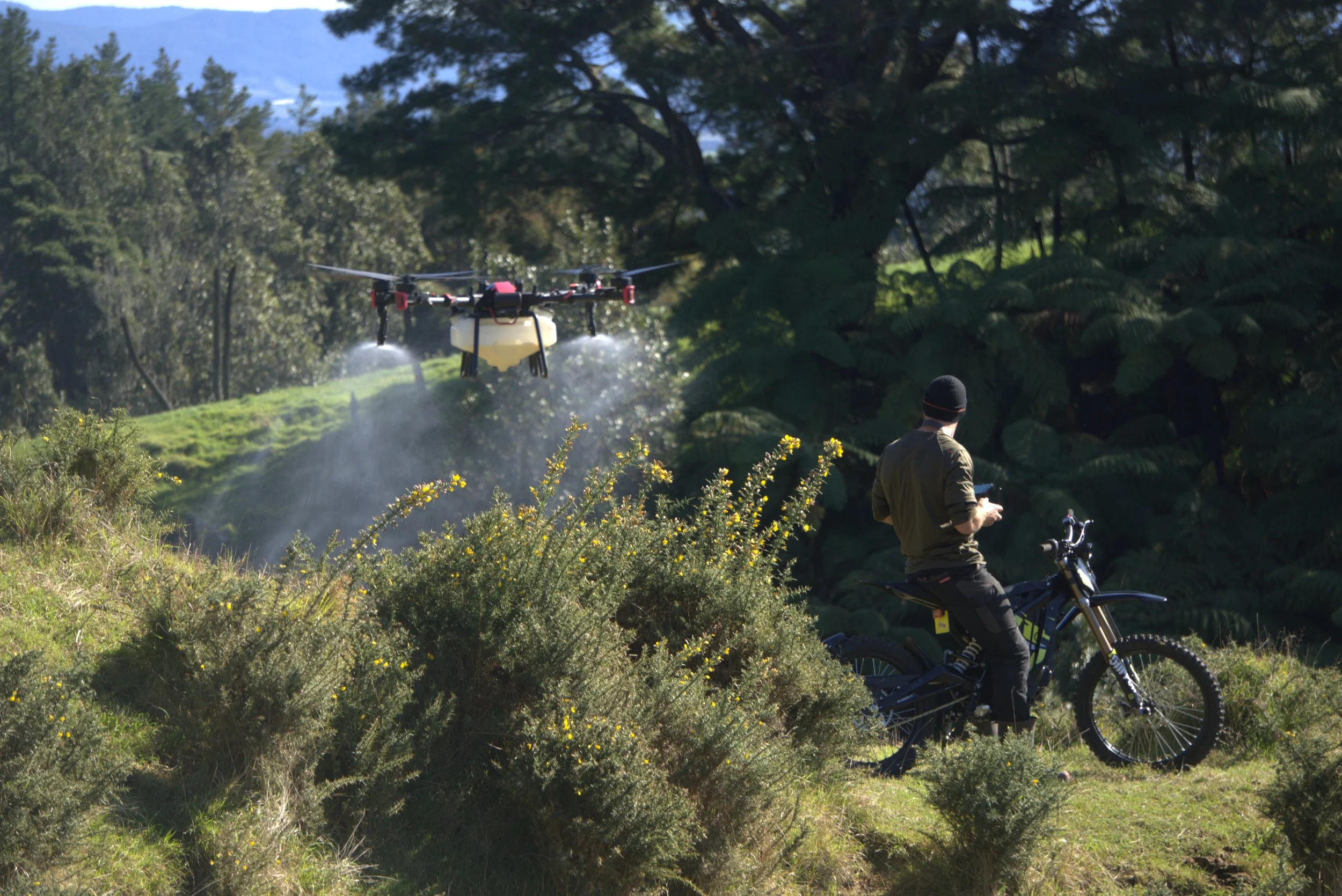 Our drone spraying is ideal for hard-to-reach and sensitive areas such as hilly country, wetlands, and waterways. With high precision application, we can carry out both blanket and targeted spot spraying while reducing water use and chemical input. This method is efficient, cost effective, and perfect for tackling invasive and pasture weeds including gorse, broom, blackberry, willow, wilding pines, thistles, ragwort, and bracken.
